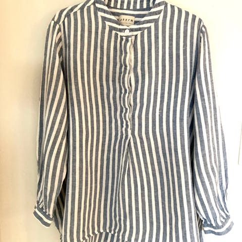 Lite brukt #bluse/ #skjorte i gråblå farge med hvite striper. Kort modell.