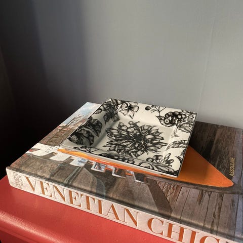 AYTM dekorasjonsfat i halvsirkel-form. Fatet er i metall og har en mørk blå farge. Formen gjør at det egner seg til oppbevaring eller som underlag for små gjenstander, for eksempel nøkler, smykker eller lys. Passer som dekorasjon på bord, hylle eller kommode i ulike rom i hjemmet.