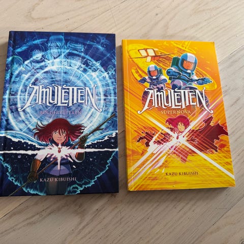 "Amuletten er en av Norges mest populære bokserier for barn. En utrolig spennende, vakker og stemningsfull tegneserie. En fortelling om modige barn, merkelige skapninger og kampen mot det onde. Bøkene om Amuletten passer både til de som leser mye og de som leser lite. Vi ser at bøkene skaper leselyst!"