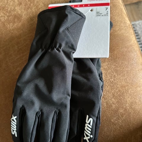 Swix Marka Glove W hansker i størrelse 7/S-M. Farge svart. Hanskene har lang mansjett og elastikk ved håndleddet for bedre passform. Egnet til bruk i kaldt vær, for eksempel til tur, ski og annen utendørs aktivitet.