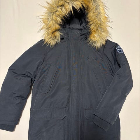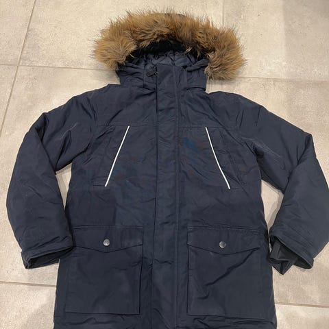 Kjempefin og varm parkas/vinterjakke fra Jotunheim. Mørk grå. Avtagbar hette. Pelskant på hetta er også avtagbar så jakken kan brukes både med og uten hette og med og uten pelskant på hetta. Ekstra varm med teddyfor på bryst og rygg. Masse lommer og detaljer. Meget pent og lite brukt. Fremstår som veldig fin jakke.