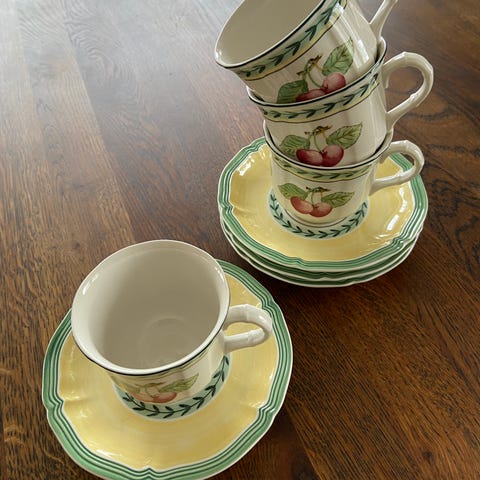 Barneservise med bilde av bjørn. Tallerken og kopp.