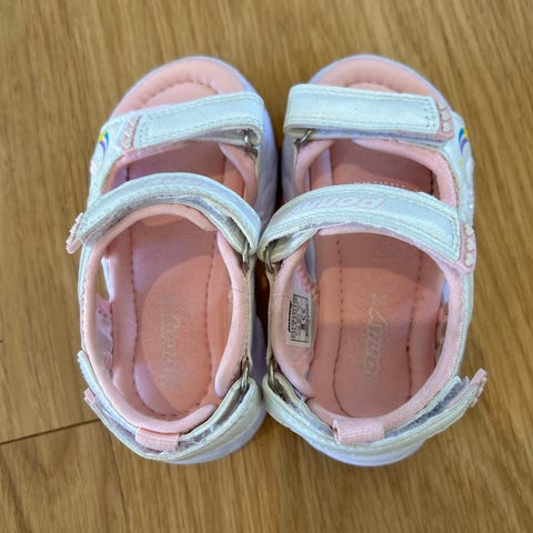 Brukt av ett barn en ukes tid. Begge sandaler blinker og tåler vann.