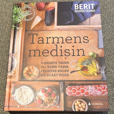 Berit Nordstrand Tarmens medisin bok. Fagbok/kokebok om tarmhelse med fokus på kosthold og praktiske råd. Om hvordan mat og livsstil kan påvirke tarmen, samt oppskrifter og trinnvise veiledninger for å støtte en sunn fordøyelse.