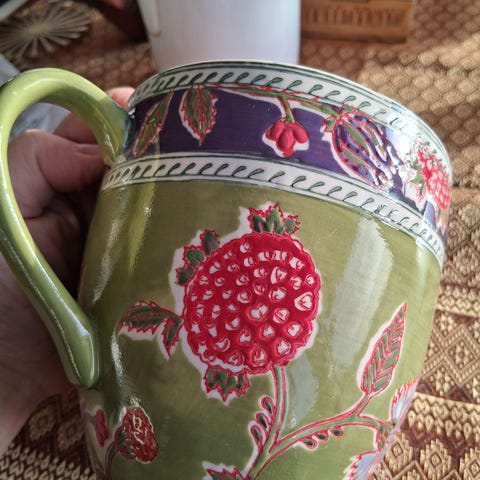 Selger Jumbo krus fra Indiska med litt skade (se bilder). Skaden er synlig, men kruset er fortsatt brukbart