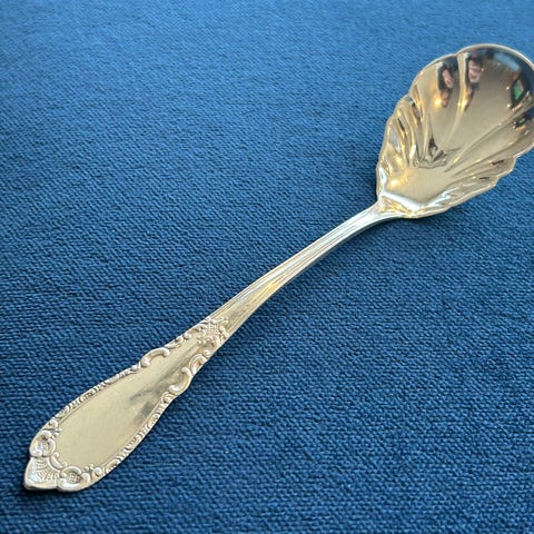 Helt ny anretningsskje fra Th.Marthinsen selges kr 2500,- Den ligger i plast og fløyelspk. Bare tatt ut for fotografering. Porto kommer I tillegg Post Nord kr 69,-