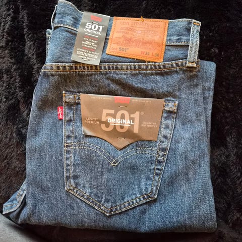 Levi's Baggy Dad cordfløyelsbukse for dame i beige farge. Den har klassisk 5-lommers design med beltehemper og gylf med knapp og glidelås. Størrelse XXL, livvidde W34. Total lengde 111 cm, beinlengde 78 cm, omkrets 106 cm. Går ut ved bruk. Passer som en løsere, rett modell til hverdagsbruk. Kun vasket og ble for liten. Sendes mot porto.