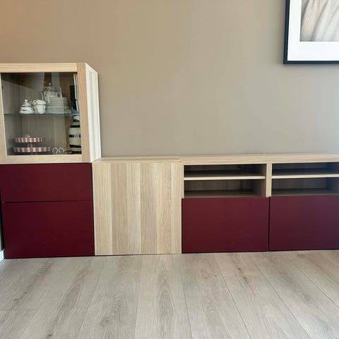 Kjøpt ny høsten 2021. Ingen bruksmerker. Alt fungerer. Tre skap, to skuffer og en åpen hylle. Stått inne hele tiden.