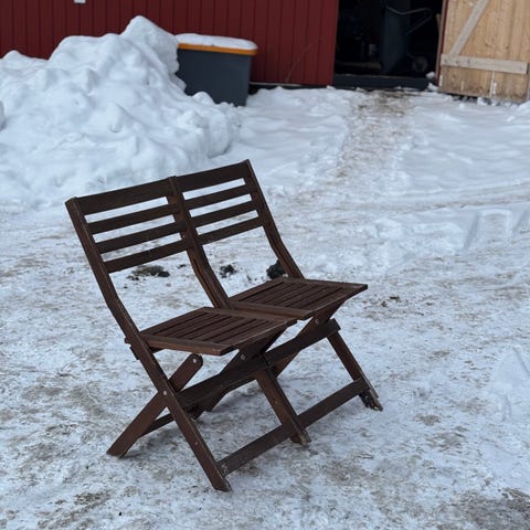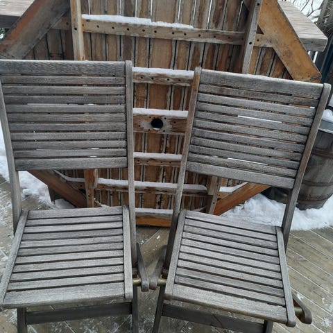 Sammenleggbare stoler i tre, egnet for utendørs bruk.