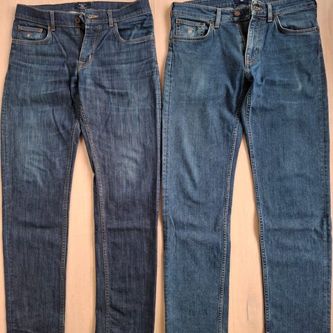 Gant slim jeans for herre i blå denim. Buksen har livvidde W33 og benlengde L30. Klassisk femlommersmodell med beltehemper og glidelås/gylf med knapp. Materialet er denim, som gir et robust og slitesterkt uttrykk. Passer som hverdagsbukse eller til mer uformelle anledninger.