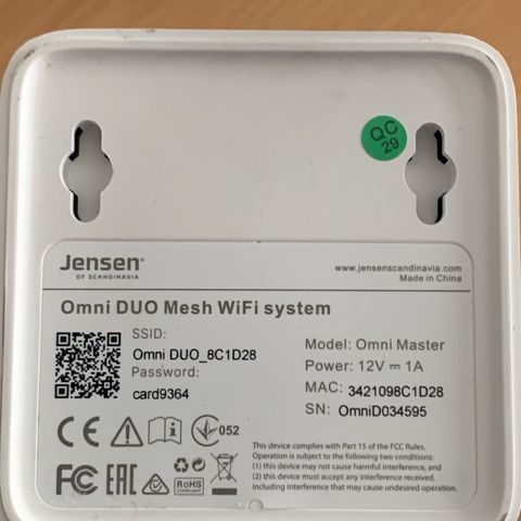 Alle Omni lite-enhetene i esken er allerede sammenkoblet. Etter at du kobler den første Omni lite-enheten til internett, trenger du bare å slå på de to andre enhetene, og de kobler seg til automatisk. Passord er skrevet på boksen.