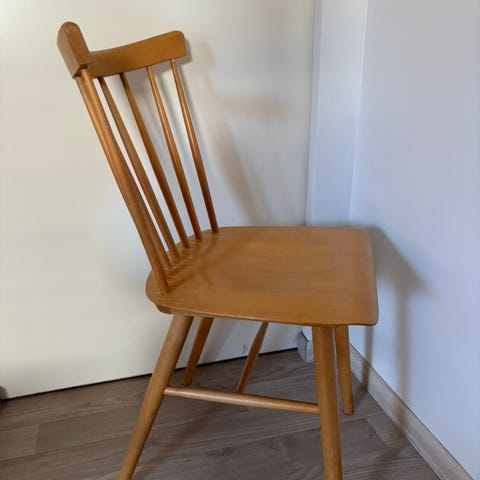 2 stkpinnestoler i brunbeiset tre, som trenger litt kjærlighet. Ingen synlige skader, men vises at de er gamle. Selges samlet