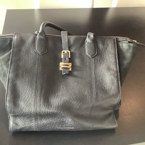Tiger of Sweden skinnveske for dame i brunfarget lær. Vesken har doble hanker og avtakbar skulderrem, samt glidelåslukking på toppen. Innvendig er det hovedrom med fôr og flere mindre lommer for organisering av innhold. Passer til hverdagsbruk, jobb eller korte turer der det er behov for en romslig veske i skinn. Pent brukt og mykt kvalitets skinn.