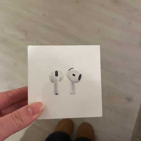Selger Airpods 4 med støydemping helt ubrukt (kun prøvd på i ca 10 min). Ble kjøpt nye på Elkjøp. Kvittering medfølger. De har kun blitt oppbevart i esken siden jeg fikk dem. Markerer annonsen som ny/uåpnet siden de knapt er prøvd på, selv om emballasjen er brut. Fikk ikke lov til å levere dem tilbake til Elkjøp, så da selges de her istedet.