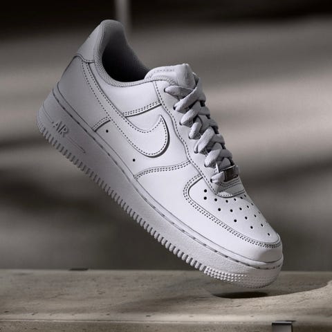 Nike Air Force 1 sneakers i størrelse 39. Modellen er lav og kommer i helhvit farge med klassisk Nike-logo på sidene. Overdelen er i glatt materiale med perforeringer i tåpartiet for ventilasjon. Skoene har snøring, polstret hælkappe og kraftig yttersåle med mønster for grep. Egnet som fritidssko og til hverdagsbruk.
