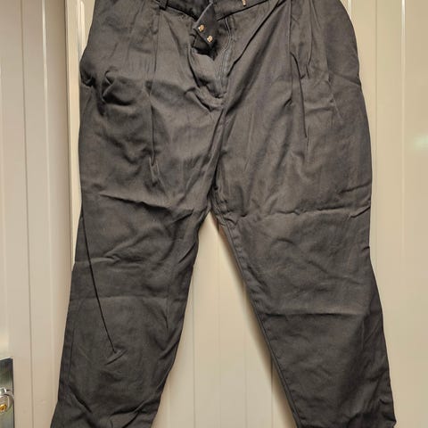 COS bukser for dame i svart farge, størrelse 38. Buksen er laget i ullblanding (95 % ull) og har høyt liv med knappelukking foran. Modellen har vide ben, skrålommer foran og en enkel lomme bak. Egnet til både hverdags- og kontorbruk avhengig av styling.