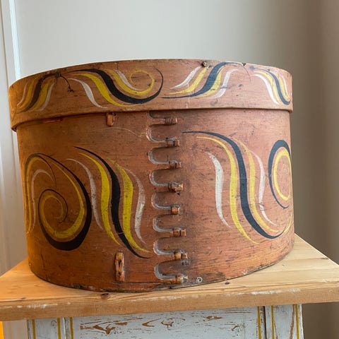 Antikk trekrukke med lokk med utskåret dekor fra 1911