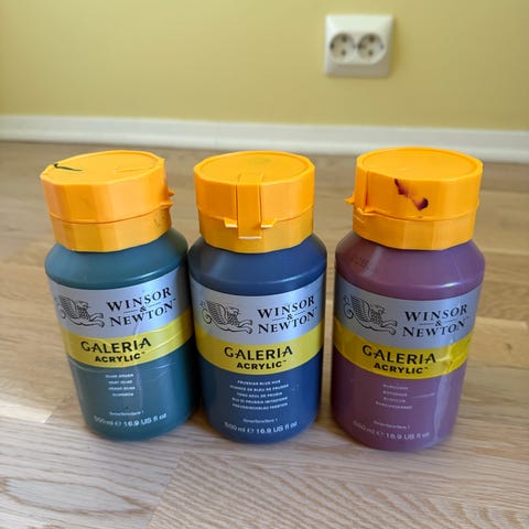 To flasker Winsor & Newton Galeria Acrylic Mediums Gloss Varnish à 75 ml kan brukes som blank ferniss over akrylmaling.