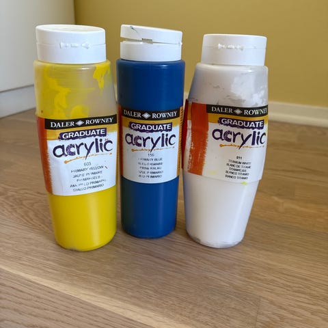 DAS leire,Galeria gloss varnish akrylmedium og Panduro akrylroller med plate