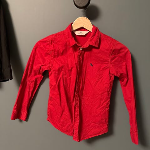 Pent brukte skjorter fra Cubus, Kappahl og H&M i str. 128. Alle utenom den blå er i linmiks.