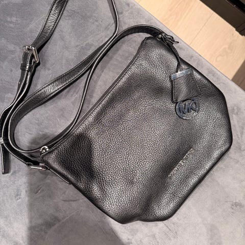 Michael Kors skulderveske for dame i svart skinn. Vesken har justerbar skulderrem og klaff med magnetlukking. Innvendig har den plass til nødvendigheter som lommebok, mobil og nøkler. Diskré logo i metall foran.