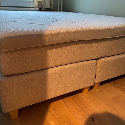 Nb! Selve sengen er som ny. Overmadrassen har noen få flekker, kan fint renses.