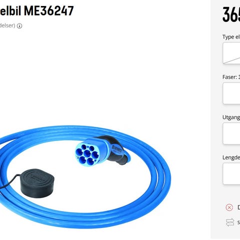 • Plugg/uttak: Type 2 til Type 2 (IEC 62196-2)
