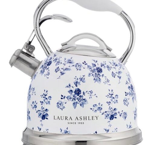 Stor fløytekjele (3 l) med koselig motiv, fra Laura Ashely selges rimelig.