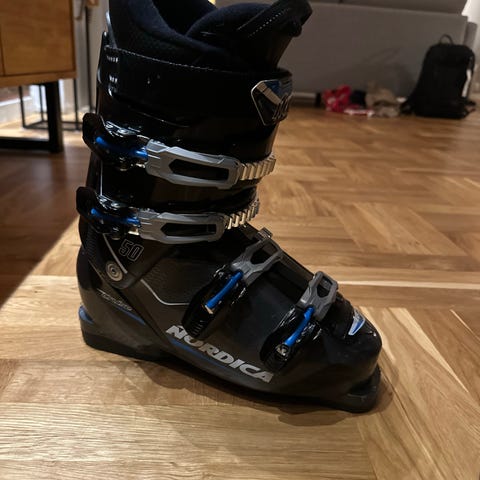 Slalomstøvler til barn, av merket Rossignol, selges. Støvlene er merket strl. 21,5 - 255 mm. I henhold til tabell på nett tilsvarer dette skostørrelse 34-35. Støvlene selges brukt.
