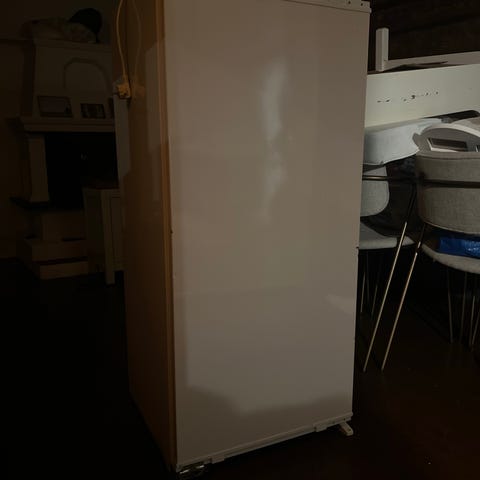 Fungerer som den skal. Fem hyller. Høyde 144, bredde 55.