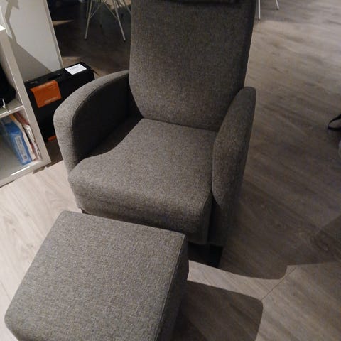 Behagelig stol som er designet for å amme og vugge baby. Stolen er god å sitte i og gir behagelig vugging både med stol og krakk. Vuggingen i stolen kan skrues av med håndtak på siden. Dette er lurt å gjøre når man reiser seg med baby.