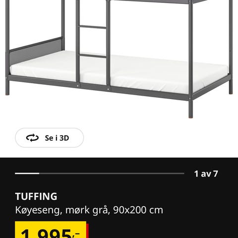 Køyeseng fra Ikea. Brukt i 3 år. 2 madrasser medfølger og 1 overmadrass. IKEA Tuddal madrass i hvit farge. Madrassen har et quiltet overtrekk med glidelås. Egnet til bruk i seng eller køyeseng, som vist på bildene.