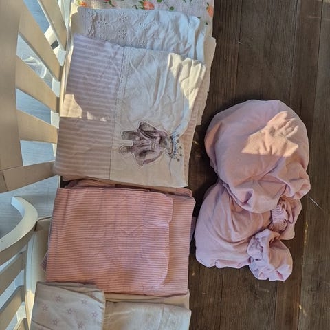 Sengetøyet i bomull. Begge sett kjøpt ny i 2020. Brukt av 3 barn. Glidelås nederst på begge dynetrekkene.