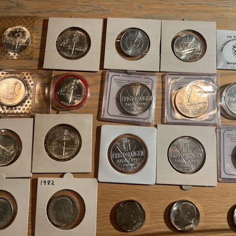 12 stk. 10 kr 1964. Norsk minnemynt i sølv.