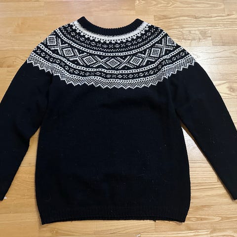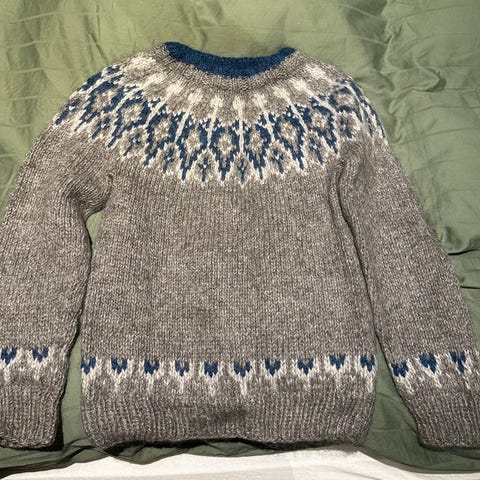Fanagenser strikkegenser varm S hjemmestrikket dame
