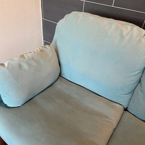 Liten og myk sofa. Nyvasket putetrekk. Selges rimelig 500 kr