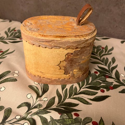 Kvadratisk krukke med lokk. Sannsynligvis fra norsk eller dansk keramiker. Stemplet D. Gått et lite skår på ene foten, ellers i god stand. B:12,5 D:12,5 H:13,5/18,5