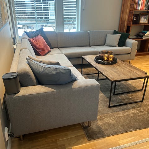 Kjempe god grå sofa selges billig. Den er ikke vasket. trekkene kan tas lett av og vaskes i maskin. Noen flekker, men går fint av i vask/ evt klut.