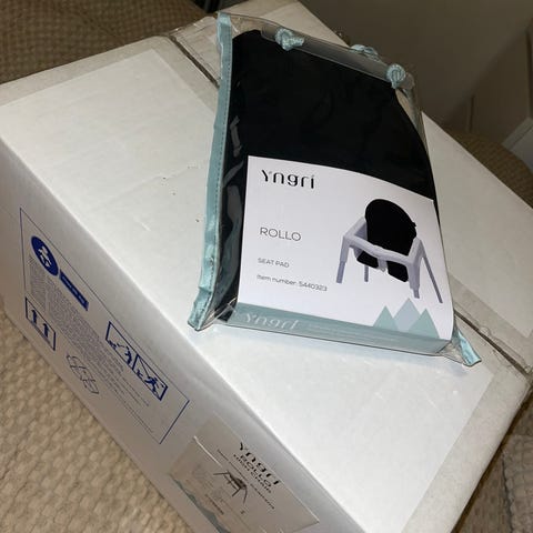 Grå Yngri Rollo barnestol. Brukt som ekstra stol, og derfor lite brukt.