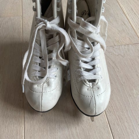 Spine kunstskøyter for barn i størrelse 35. Skøytene er hvite med snøring og høy ankelstøtte. Overdelen er i syntetisk materiale med myk, polstret innside for økt komfort. Blad i metall med hælparti i plast. Egner seg til bruk på isbaner og skøytefelt for fritidsbruk og enkel kunstløpstrening.
