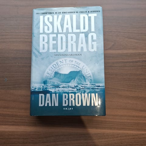 Dan Brown, Iskaldt bedrag. Norsk oversettelse av thrilleren Iskaldt bedrag, utgitt på forlaget Bazar. Boken er en spenningsroman som kombinerer politiske intriger, vitenskapelige temaer og etterforskning. Teksten er på norsk bokmål og innbundet utgave vises på bildene. Passer for lesere som ønsker en spenningsbok innen krim- og thriller-sjangeren.