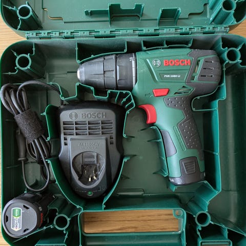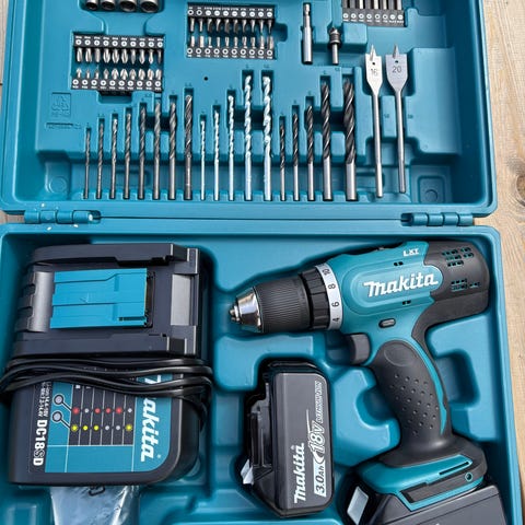 Lite brukt. Fungerer. Med 2 batterier, borsett og hammer funksjon.
