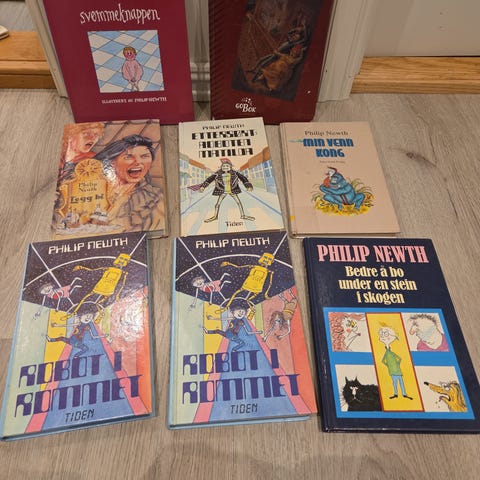 Bøkene er innbundet og på norsk.