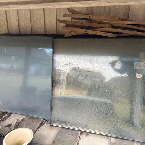 Glassplater / vindusglass i herdet klart glass. Glasset har polerte kanter. Enkelte merker og småskader langs kantene, som vist på bildene. Passer for gjør-det-selv-prosjekter.