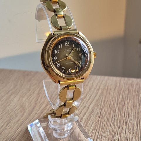 Klassisk sveitsisk vintageklokke fra tidlig 1970-tall. Mildia er et mindre, men ekte Swiss Made-merke som leverte mekaniske ur med solide standardverk. Denne har et tidsriktig design med karakteristisk 70-talls kasse og en pen brun/gull-tonet skive som gir klokken mye personlighet.