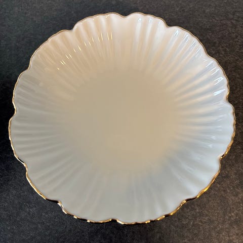 Lite fat med gullkant, 17 cm fra hank til hank, 10 cm kortside, høyde 4 cm