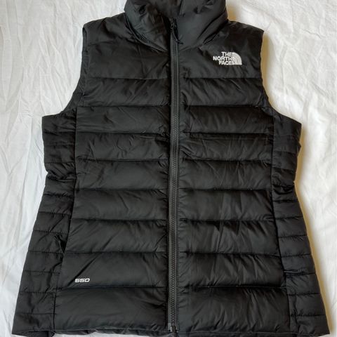 Adidas dunvest for dame i størrelse M (EU 38). Vesten er grønn og vattert med dunfyll. Den har høy krage og glidelås i front. På utsiden er det to romslige sidelommer med klaff og knapp. Innsiden har en enkel lomme. Passer som ytterplagg eller mellomlag på kjølige dager. Den er i veldig god stand.