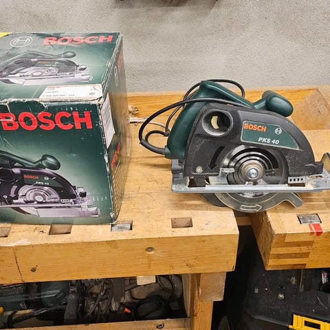 Bosch PKS 18 LI sirkelsag batteridrevet. Kompakt håndholdt sirkelsag for trearbeid og andre enkle sagemner. Følger med lader og 2 stk 1,5 Ah batterier samt anslag. Kompatibelt med masse andre verktøy i Bosch sitt 18V system..