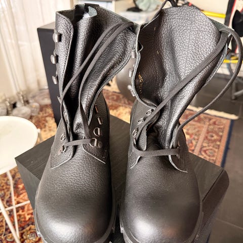 NBZ militære pilot turstøvler i beige farge. Støvlene har overdel i semsket skinn kombinert med tekstilpartier, snøring foran og glidelås på siden for enklere av- og påtaking. Kraftig yttersåle med grovt mønster gir godt grep på variert underlag. Modellen er nøytral i passform og kan brukes av både dame og herre, avhengig av størrelse. Egnet til tur og fritidsbruk i terreng og bymiljø. 400kr
