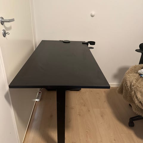 Elektrisk hev- og senkbart skrivebordsunderstell i svart. Både bredde og høyde kan reguleres, se bilder.